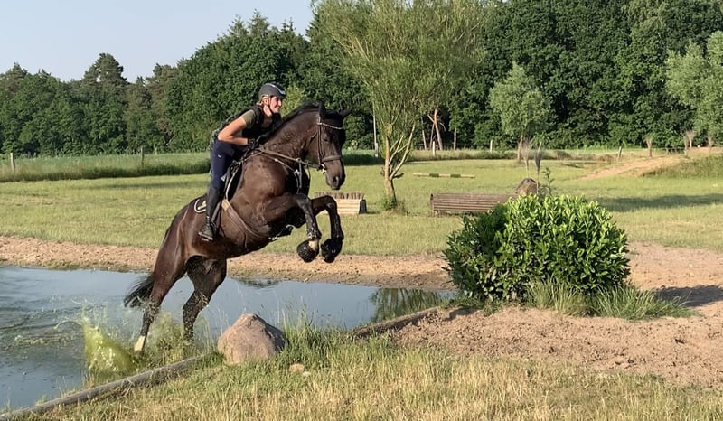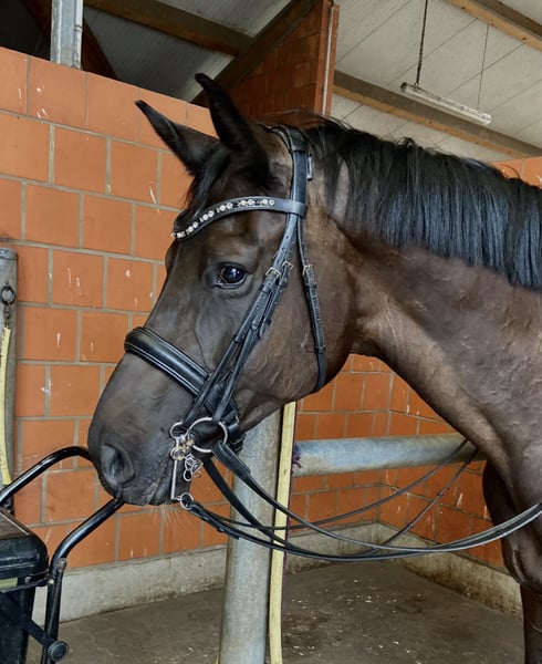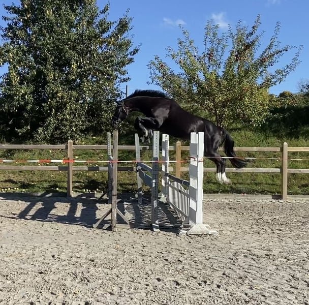 Wenn alles passt in allerbeste Hände abzugeben – ideal für ambitionierte Reiter! Mein großes Bärchen sucht aufgrund von Zeitmangel - wenn alles 100% passt- seine neue Familie. Er ist ein absolut ehrliches, dennoch sehr sensibles Pferd mit einem Herz aus Gold! Er bringt sehr viel Bewegungsqualität mit und sein Springvermögen lässt nicht zu wünschen übrig. Seine vielseitigen Fähigkeiten im Springen machen ihn zu einem zuverlässigen Partner für den Turnierreitsport oder den anspruchsvollen Freizeitreiter. Er ist ein sehr leichtrittiges Pferd, welches sehr großrahmige Bewegungen hat. Ich würde mir einen feinfühligen, gefühlvollen Reiter für ihn wünschen. Aufgrund seiner Größe habe ich ihn erst 5 jährig richtig geritten. Er hat mich während meiner Ausbildung zur Bereiterin begleitet und gemeinsam durften wir viel lernen. Sei es in der Dressur auf Kandare, im Springparcours oder in der Vielseitigkeit. In diesem Jahr haben wir zudem das Jagdreiten für uns entdeckt. Wenn Dino Vertrauen gefasst hat macht er wirklich alles möglich! Er ist ein sehr zuverlässiger Partner im Gelände - egal ob alleine, in der Gruppe, mit Hund oder mit Handpferd. Zudem ist er Verkehrssicher und im Umgang einfach ein Schatz. Unarten wie bocken oder steigen kennt er nicht. Aufgrund seiner großrahmigen Bewegung und der sensiblen Art nicht für Anfänger geeignet Bei Interesse oder für weitere Informationen stehe ich gerne zur Verfügung