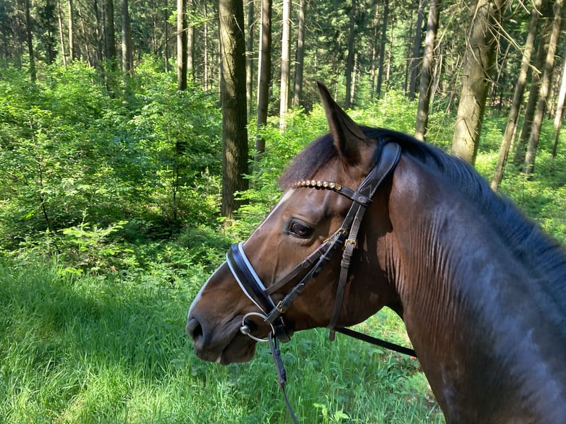 Scotty Wallach | 9 Jahre | ca. 1,63 m | Hannoveraner aus Stolzenberg x Contendro I Aus Zeitgründen verkaufe meinen neunjährigen Hannoveraner Wallach, den ich selbst als Fohlen gekauft und ausgebildet habe. Er ist ein absolut liebenswürdiger, ehrlicher Partner mit Schwerpunkt Springen, aber auch in der Dressur solide ausgebildet – ein echtes Allround-Pferd, das einfach Spaß macht. Ausbildung: Sicher auf L-Niveau im Springen, mit Vermögen und Einstellung auch für M. Sehr schöner Sprungablauf, raumgreifender Galopp, vorsichtig und mit Übersicht. Auch von einer 13-jährigen Reiterin erfolgreich in Stilspringen vorgestellt – stets brav und konzentriert. Dressurlich bis L- Lektionen gearbeitet, angenehm an den Hilfen und leicht zu reiten. Seine Vollschwester ist auf internationalen Turnieren in der Vielseitigkeit erfolgreich. Charakter: Im Umgang absolut artig, unkompliziert und menschenbezogen. Kennt Ausritte – alleine oder auch in der Gruppe brav und zuverlässig. Selbstverständlich Schmiede- und verladefromm. Lebt aktuell in einer gemischten Herde. Täglich mindestens 8 Stunden Weidegang – das sollte auch im neuen Zuhause so bleiben. Ich wünsche mir für ihn ein liebevolles Zuhause, wo er die Aufmerksamkeit bekommt, die er verdient. Ideal wäre ein Reiter oder eine Familie, die ein sicheres, leistungsbereites Freizeit- oder Turnierpferd sucht – vielleicht als Umsteigerpferd oder als Mutter-Tochter-Pferd. Standort: Ankum Kontakt: 05462/ 3810697 Bitte nur ernst gemeinte Anfragen