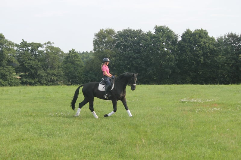 Qui ne le souhaite pas... trotter sans tension à travers la forêt tout en participant à un concours de dressage L le week-end... tout cela réuni dans ce magnifique cheval ! "Livignon" vient directement de l'éleveur et a été formé professionnellement ces dernières années. Il possède trois excellentes allures de base et son attitude au travail est exemplaire. En ce qui concerne le comportement, il est l'un des préférés de l'écurie, car c'est tout simplement un trésor. Un bon contrôle technique plus ancien est disponible et peut être envoyé. Rencontrer, tomber amoureux et essayer à tout moment est possible sur rendez-vous téléphonique !