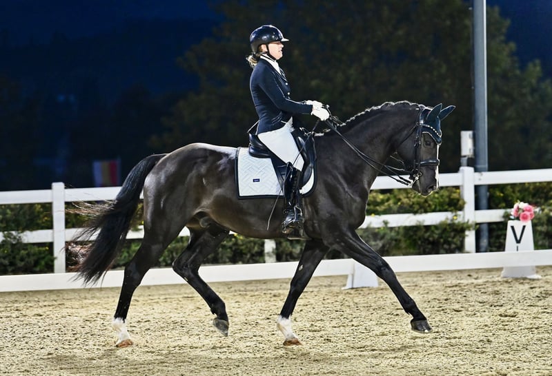 With a heavy heart, I am selling my 8-year-old gelding named Fridolin. Fridolin has been with me since he was four years old and has a heart of gold. In his training, he has achieved successes up to Medium level dressage. He is a fantastic horse for practicing flying changes, which he performs from any situation. Fridolin is a well-behaved horse with a clear mind and a balanced temperament. This makes him an excellent partner for nervous or beginner riders. He is also great in the field, and he is herd-friendly, shoeing- and loading-safe. Due to lack of time, Fridolin is now looking for a 5-star home. For inquiries, please contact me at the following phone number: +49 151 23581553