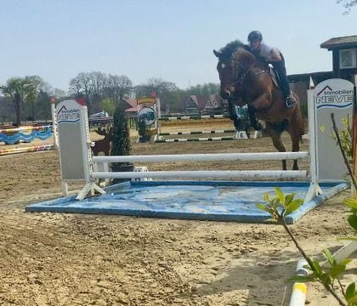 Zum Verkauf steht ein 9-jähriger Wallach, der sich als echtes Amateurpferd und Schoolmaster bewährt hat. Er kommt direkt vom Züchter und wird derzeit von einer Amateurin geritten! Er ist sehr unkompliziert im Parcours, einfach zu reiten und vermittelt seinem Reiter stets ein sicheres Gefühl. Auf dem Turnier ist er im Springen bis zur Klasse M* platziert. Auch in der dressurmässigen Arbeit zeigt er sich brav, unkompliziert und zuverlässig. Ein ideales Amateur- und Lehrpferd - bestens geeignet zum Weiterlernen und Spaßhaben im Parcours! Dieser Wallach sucht nun sein bestes neues Zuhause, wo er weiterhin gefördert wird und Freude bereiten darf. Gute Röntgenbilder von Anfang 2025 liegen vor!