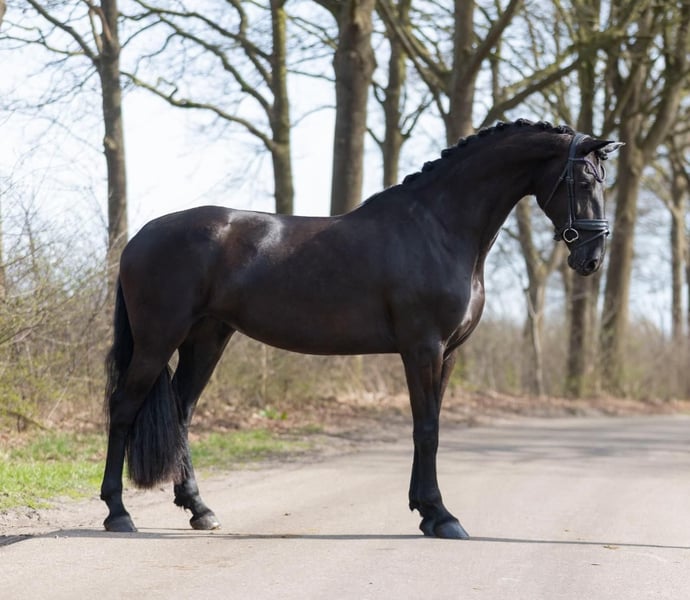 Ein außergewöhnlich attraktiver, vollständig schwarzer Hannoveraner Wallach, der sowohl im anspruchsvollen Spring- als auch im gehobenen Dressursport überzeugt. Dieser elegante Sportpartner besticht durch sein harmonisches Exterieur, seine ausdrucksstarke Erscheinung und seine hervorragende Rittigkeit. Der Wallach verfügt über ein korrektes Fundament, eine kraftvolle Hinterhand sowie eine sehr gute Schulterfreiheit, was ihm sowohl im Parcours als auch im Viereck optimale Bewegungsabläufe ermöglicht. Seine Grundgangarten sind überdurchschnittlich: ein raumgreifender, taktsicherer Schritt, ein elastischer Trab mit viel Schub aus der Hinterhand sowie ein ausbalancierter, bergauf gesprungener Galopp, der sich ideal für Lektionen der höheren Klassen eignet. Im Springen zeigt er großes Vermögen, eine hervorragende Technik am Sprung sowie Übersicht und Vorsicht. Gleichzeitig überzeugt er in der Dressur durch seine Lernbereitschaft, feine Anlehnung und die Fähigkeit zur Versammlung. Damit ist er ein idealer Partner für Reiter mit Ambitionen im gehobenen Turniersport. Charakterlich ist er leistungsbereit, aufmerksam und nervenstark. Er zeigt sich im täglichen Training stets kooperativ und verfügt über ein ausgeglichenes Temperament, wodurch er auch für erfahrene Amateurreiter interessant ist. Talentierte wallach mit gutem Sprungablauf und einer exzellenten Einstellung. Platziert bis 1,03 m, startbereit für 1,35 m. und fortgeschrittene Dressursportarten. Besonders hervorzuheben ist sein einwandfreier Gesundheitszustand: Alle tierärztlichen Untersuchungen inklusive umfangreicher Röntgenbilder liegen aktuell und ohne Befund vor. Der Wallach ist somit sofort einsatzbereit für den Sport. Zuverlässiges Springpferd für ambitionierte Amateure. und fortgeschrittene Dressur Sportarten. Lieb, motiviert, brav, gute Einstellung. Ein Pferd mit großem Potenzial, das durch Qualität, Einstellung und Erscheinung gleichermaßen überzeugt.