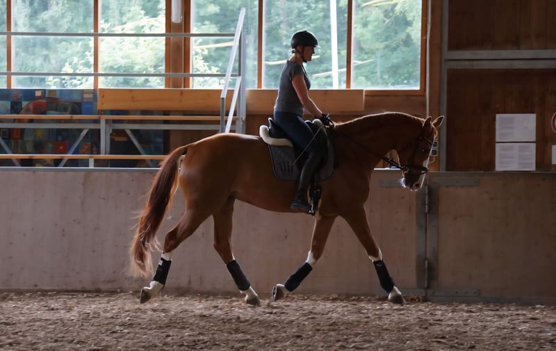 Gentle 9-year-old Hanoverian gelding for sale. Solidly trained in dressage, but he clearly enjoys trail riding and leisure riding much more, so I am looking for a home where the focus is more on hacking and recreational riding. He is very personable and absolutely well-behaved in handling. The gelding cannot tolerate grain and must be fed grain-free. For this reason, he develops muscle easily and is therefore not suitable as a sport or competition horse. An ideal environment would include several hours of turnout daily. Only to the best hands. Quality over price.