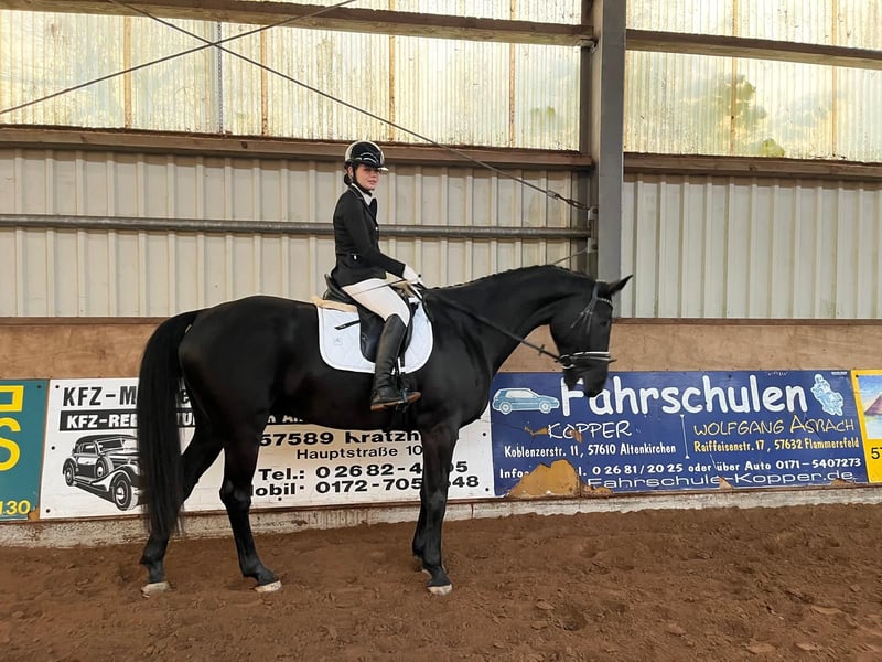 Verkaufe eleganten Hannoveraner Wallach – ideal für Dressur! Dieser beeindruckende Rappe wurde im Jahr 2017 geboren und überzeugt durch seine elegante Erscheinung und sein angenehmes Wesen. Mit einem Stockmaß von 178 cm bietet er die perfekte Größe für ambitionierte Reiter, die Wert auf Qualität und Leistungsbereitschaft legen. Der Wallach ist bestens im Dressursport ausgebildet und zeigt bereits viel Talent und Feingefühl in der Dressurarbeit. Seine angenehme Art macht ihn sowohl für erfahrene Reiter als auch für ambitionierte Nachwuchsreiter zu einem zuverlässigen Partner. Bei Interesse oder für weitere Informationen stehe ich gerne zur Verfügung. Überzeugen Sie sich selbst von diesem vielversprechenden Pferd! Weitere Bilder und Videos auf Anfrage. Probereiten vor Ort in einer Halle nach Absprache möglich
