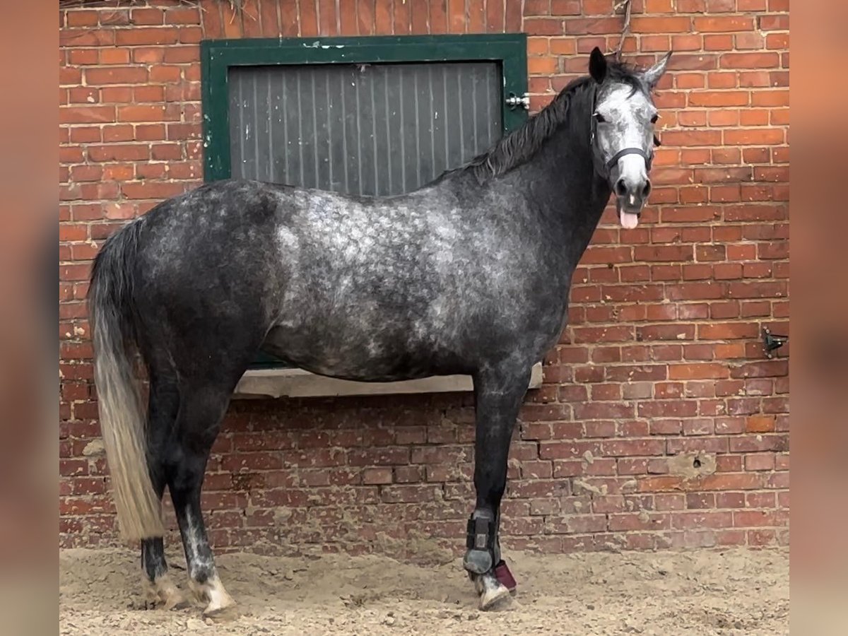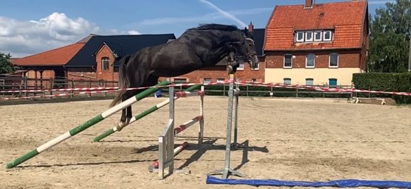 We are looking for a new, loving home for our dear mare. She is 10 years old and has been rated up to 2-star level in dressage. Unfortunately, she is no longer suitable for competitive sport. She has a tendon injury in her front leg that can no longer be fully repaired. She is slightly lame at the trot but does not have any swelling or swelling in the leg. She would be suitable for breeding or as a companion horse. She has previously foaled and was used in breeding due to her longstanding tendon issue. She responded well to initial handling. We also have too many horses and, unfortunately, some have to find new homes. She has a city prize and scored 9.5 points in the mare performance test in jumping. She has a lot of talent and is very rideable. Her height is 1.67 meters, and she is a grey. She is very gentle, well-behaved, social, and affectionate. Price is negotiable. I look forward to any inquiries.