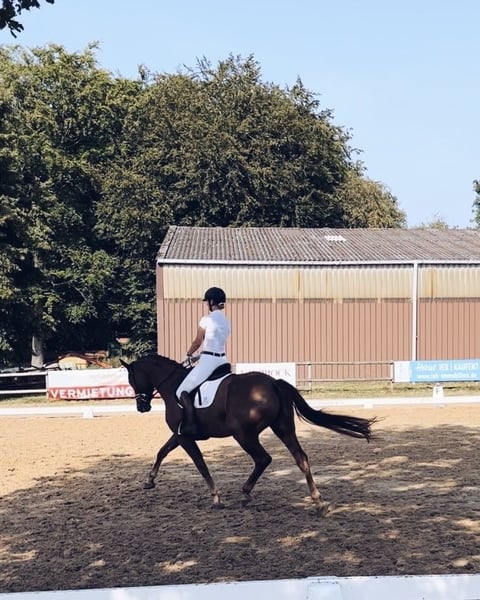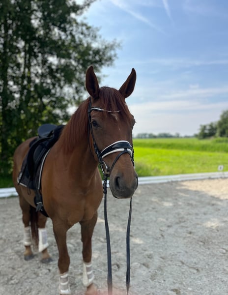 Quintina ist eine super liebe, zuverlässige Stute, die nicht nur im Umgang unkompliziert ist, sondern auch sportlich überzeugt. Sie hat bereits mehrere A-Dressuren mit Noten bis 8,4 gewonnen und konnte sich auch in einigen L-Prüfungen platzieren. Geländesicher und immer motiviert, ist sie für jeden Spaß zu haben, egal ob Ausritte, Training oder Turniere. Quintina eignet sich hervorragend für Turniereinsteiger, die ein zuverlässiges Pferd suchen, aber auch für Reiter, die gemeinsam mit ihr weiterkommen und sich sportlich weiterentwickeln möchten. Ein treuer Partner für alle, die Spaß am Reiten und an der Arbeit mit einem tollen Pferd haben! Bei Interesse oder Fragen gerne per WhatsApp melden unter: 0155 66299621