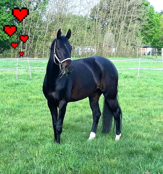 **Annuncio di vendita: elegante cavalla Hannoveraner** In vendita c'è una bellissima cavalla Hannoveraner, nata nel 2015. È di colore baio scuro (baio invernale) e ha un'altezza al garrese di 168 cm. È un ottimo cavallo da tempo libero di alto livello. Con un approccio coerente e giusto, è sia gentile che collaborativa sia a terra che sotto sella. Il cavaliere deve sapere cosa fare e padroneggiare l'uso delle aide. Ha bisogno di una guida coerente. La cavalla è regolarmente vaccinata e sverminata. È in mio possesso da 4 anni e mezzo. Comprata direttamente dal allevatore a 6 anni. Lì ha avuto un puledro. Quindi è interessante anche per la riproduzione, poiché è molto affidabile in calore. Nei primi due anni l'ho montata in modo molto versatile (escursioni, passeggiate, tra cui Neuwerk, campo di completo). Conosce e ama il lavoro a terra, ascolta bene, saltando liberamente con impegno! A causa di circostanze personali, negli ultimi due anni l'ho montata 'solo' a casa (prato, arena, maneggio). Anche i miei figli di 7 e 12 anni la spazzolano, la conducono e la montano alla longe. A causa di cambiamenti personali, non riesco più a darle ciò di cui ha bisogno. Nessuna vendita urgente!!! Viene data solo in mani eccellenti. Per ulteriori informazioni o per manifestare interesse, sono a disposizione.