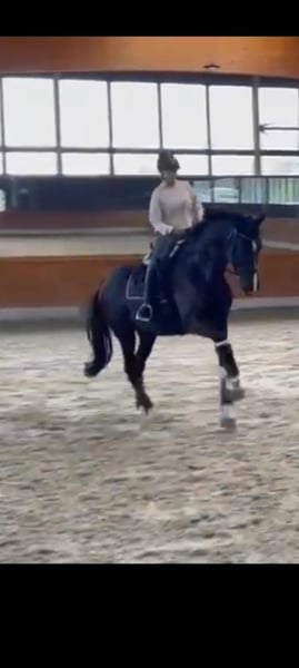 Elegante zehnjährige, in allen drei grundrundgangarten überdurchschnittliche Rappstute, welche sehr leichtrittig und sehr fein in der Anlehnung ist. Sie beherrscht das ganze S-Programm zweier Galoppwechsel und Pirouetten und wurde bereits in der Dressurpferde-M vorgestellt. Sie war die letzten drei Jahre in der Zucht und hat zwei wunderschöne Fohlen geboren. Deshalb können wir sie uns auch sehr gut in der Zucht vorstellen. Sie wird gerade nach ihrem Zuhteinsatz wieder antrainiert und zeigt sich hierbei sehr brav und leistungsbereit. Aufgrund ihrer Leichttrittigkeit und des Charakters können wir uns auch gut als gehobenes Freizeitpferd vorstellen. Bitte nur ernstgemeinte Anfragen. Wir hoffen, dass die Stute ein schönes neues zu Hause bekommt welches sie verdient hat. Eventuell können wir uns auch vorstellen ein junges Pferd (ab zweijährig) in Zahlung zu nehmen. Wir freuen uns auf eine freundliche Kontaktaufnahme. Anfragen bitte ausschließlich per WhatsApp oder telefonisch unter der Nummer +49 176 84735222.