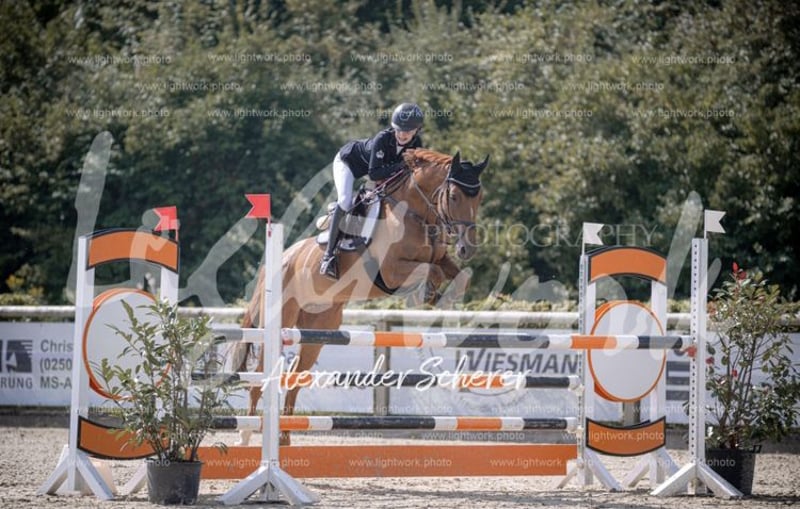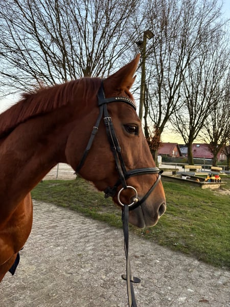 Schweren Herzens haben wir uns aus persönlichen Gründen dazu entschieden unsere 10 jährige Hannoveraner Stute Independence zu verkaufen. „Penny“, wie wir sie liebevoll nennen, ist nun schon seit 5,5 Jahren bei uns und überzeugt noch immer mit ihrem Charakter aus Gold, ihrer ehrlichen Art und ihrer motivierten Einstellung. Unsere jüngste, jetzt 15- jährige Tochter, hat auf Penny reiten gelernt und Penny hat sie von der ersten gemeinsamen Führzügel-Prüfung bis zu vielen schönen Platzierungen und „Siegen bis zum A**-Springen mit steigenden Anforderungen souverän getragen. Außerdem konnte Penny sich auch schon in L-Springen vorne bis zum zweiten Platz platzieren. (Potenzial für mehr) Im Parcours zeigt sie viel Freude und ist immer eine zuverlässige und lernwillige Partnerin, die über jeden Sprung möchte. Bei Turnieren ist Penny eine verlässliche Schleifensammlerin. In der Dressur ist sie ebenfalls sehr lernbereit und läuft im Training sowie auf dem Turnier auf A** Niveau und möchte auch da dem Reiter immer gefallen. Penny zeigt auch im Gelände sichtlich viel Spaß und konnte sich 2024 für die Goldene Schärpe qualifizieren und mit guten Noten in der gesamten Vielseitigkeit abschneiden. Darüberhinaus hat sie auch schon Erfahrung in A**-Vielseitigkeiten gesammelt. (Potenzial für mehr) Penny ist auch für jeden Spaß zu haben: ob ohne Sattel Reiten oder Springen, Ausreiten gehen oder einfach Quatsch machen- für Penny ein Vergnügen. Penny ist schmiede/-und verladefromm, regelmäßig geimpft und entwurmt. Wir wünschen uns für Penny ein liebevolles Zuhause mit guten pferdefreundlichen Gegebenheiten. Bei Interesse oder weiteren Fragen stehen wir gerne zur Verfügung. Ein Probereiten ist nach Absprache gerne möglich. Wir bitten jedoch darum, dieses nur bei ernsthaftem Interesse wahrzunehmen.