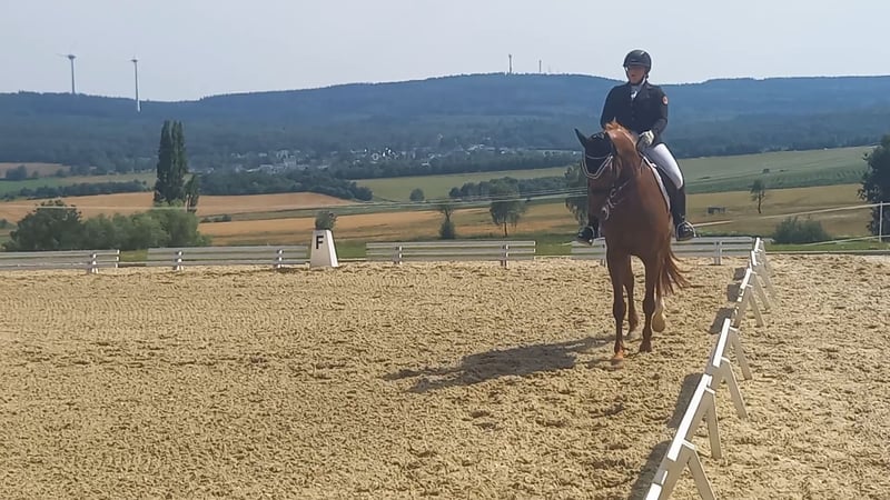 Se vende nuestra yegua Hannoveriana, criada y entrenada por nosotros, nacida en 2015. Se presenta con un brillante pelaje alazán y tiene una altura de 168 cm. Esta yegua tiene una inclinación versátil y ha obtenido colocaciones en doma y salto. Es tranquila en el manejo, bien educada y tiene un carácter amigable, lo que la convierte en una pareja ideal para jinetes ambiciosos. Actualmente, la monta mi sobrina (19 años), pero no es un caballo para principiantes. Si está interesado o necesita más información, no dude en ponerse en contacto conmigo. ¡Esperamos su mensaje!