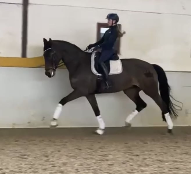 Ta klacz do ujeżdżenia jest bezpośrednio od hodowcy na sprzedaż, jest wykształcona do klasy S, bardzo wygodna w siodle i może być jeżdżona przez każdego.