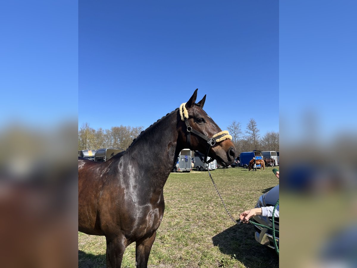 We are looking for a loving new home for our 12-year-old mare. Deverelle is an elegant mare of medium size. She is well-behaved and reliable under saddle, with a good sense of sensitivity. She has solid, practical basic gaits and is easy to sit. She also enjoys hacking out and always proves to be trustworthy. Riding without a saddle or ground work pose no issues at all. She is a wonderful leisure partner who brings joy to every ride. She is very people-oriented and enjoys attention. She gets along well with other horses and is neither dominant nor submissive within the herd, settling comfortably in the middle rank. She shows no stallion-like or temperamental behavior in handling. Deverelle has been trained up to M-level dressage. Due to a phlegmon last year, her left hind leg is chronically swollen, but she is completely sound and soundness is not affected! She benefits greatly from plenty of turnout. We are selling her solely as a leisure horse and not as a competition horse. Deverelle was born here and has been in our exclusive ownership her entire life. We wish her a good new home where she can maintain regular contact with other horses and have consistent, at least hourly, turnout.