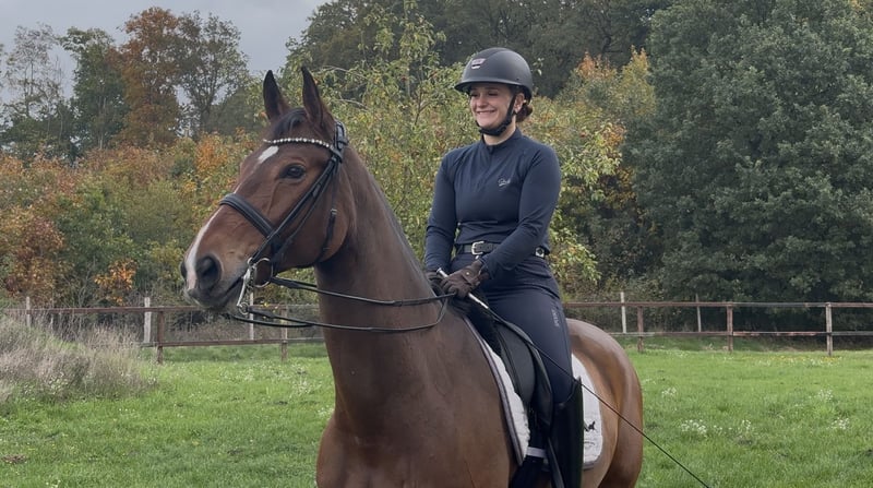 À vendre : une jument hannoverienne de 11 ans par Scolari. Elle possède des résultats en compétition jusqu’au niveau M** et est prête à l’emploi dans la grande catégorie. Très sûre en leçon et lucide d’esprit, elle se montre à l’aise dans le travail quotidien et dans ses interactions. Pour plus d’informations, n’hésitez pas à me contacter par téléphone ou WhatsApp au +49 1512 9052971.