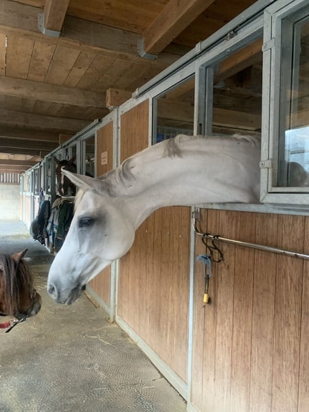 Shylara is a lovely 11-year-old Hanoverian mare with a gentle character and an elegant appearance. Sire: Spörcken; Dam Sire: Royal Diamond She is very well-behaved in daily handling – she does not bite or kick. Shylara is a sensitive horse that quickly perceives changes in her environment. At the same time, she is eager to learn, clear-minded, and always strives to please her handler. She is farrier- and loading-safe, and she is friendly and social with other horses. Currently, she is in a box with turnout, but I could also imagine her in an open stable. She loves her daily paddock or pasture time! Shylara is primarily trained in dressage and has competed in her past with her previous owner at levels L and M. Her repertoire includes flying changes, shoulder-in, and many other movements. She has pleasant basic gaits and a spacious, lively trot. She particularly enjoys hacking in the woods. In village or suburban environments, she can be a bit "curious" when alone and needs a confident, calm rider in those settings. Therefore, she is not suitable for beginners. In a group, she shows bravery. She has not been ridden in the dark, so a paddock or indoor arena at her new home would be ideal. The sale is with a heavy heart, as I do not feel I can do her justice as a rider. Additionally, my farm is located right in the center of Spreitenbach, which over time can be too much for a sensitive horse like Shylara due to the daily suburban hustle and bustle. Price: 16,000 CHF Further information via private message.