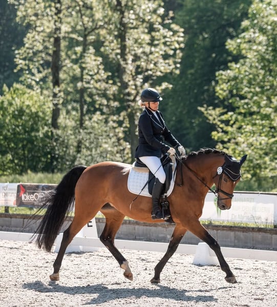 Hermosa y elegante yegua Hannoverana, con genética de primer nivel y excelentes movimientos básicos. Muy tranquila en su manejo diario, muy sociable y confiada en la herrería. Hija del legendario Numero Uno (KWPN), considerado uno de los sementales de salto más influyentes a nivel mundial. Éxito hasta 1,50 m bajo Marco Kutscher, con hijos destacados como Tamino, Tyson, Van Gogh y Cristello. Padre: Landsieger I, conocido por su doble aptitud y fortaleza en rendimiento, con éxito hasta la categoría S (1,50 m). Sus descendientes alcanzan nivel Gran Premio y saltan hasta 1,70 m. Sementales aprobados incluyen a Landano y Landsieger II, ambos garantía de manejabilidad y disposición para el deporte. Si está interesado, estaré encantado de recibir su contacto. La visita puede realizarse en cualquier momento previa cita.