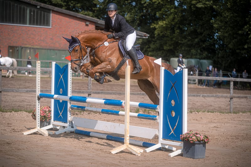 Zum Verkauf steht eine 13-jährige Hannoveraner Stute Checcolonia VH, liebevoll „Fuchsi“ genannt. Die ca. 1,68 m große Fuchsstute überzeugt mit ihrem Vermögen im Parcours und bringt bereits Erfahrung im Springen bis A/L-Niveau mit. Sie springt mit Übersicht und Vermögen und zeigt sich dabei stets aufmerksam am Sprung. Sie konnte zuletzt 2023 noch Platzierungen in Springpferdeprüfungen der Klasse A erreichen. Aufgrund eines Jobwechsels hatte sie zuletzt eine Trainingspause von etwa einem Jahr, bringt aber eine solide Grundausbildung mit und ist bei konsequenter Arbeit wieder gut förderbar. „Fuchsi“ ist eine klassische Fuchsstute mit Charakter und Persönlichkeit. Daher ist sie nicht für Anfänger geeignet, sondern eher für erfahrene Reiter, die ein Pferd mit Ecken und Kanten zu schätzen wissen und weiter fördern möchten. Neben dem Springen ist sie auch für die Vielseitigkeit interessant und zeigt sich geländesicher. Sie ist gesund, es sind keine bekannten Krankheiten vorhanden. Röntgenbilder liegen aus 2020 vor. Schmiede- und verladefromm, regelmäßig geimpft und entwurmt. Bei ernsthaftem Interesse freue ich mich über eine Nachricht.
