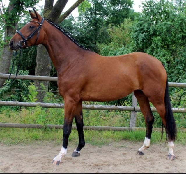 ALLROUNDER !!! Wunderschöne Stute sucht Bestplatz, nur aus Altersgründen steht diese brave überaus leichtrittige Stute zum Verkauf. Mit allerbester Abstammung v. Fidertanz x De Niro war sie nach dem Anreiten ( A- Dressur & Eignung plaziert) in der Zucht ....wurde im letzten Jahr wieder antrainiert und Dressur und Springen auf A- Niveau geritten. Aufgrund Reitermangels hatte sie dann wieder längere Zeit Pause und wird jetzt seit Oktober wieder geritten und macht täglich Spaß, ob Halle, Platz, Gelände oder Springen , Franzi ist für alles zu haben. Sie ist sehr brav und ehrlich im Umgang und unterm Reiter, auch Geländesicher und Verladefromm. Aktuelle AKU vom Oktober 2025 vorhanden. Bitte nur ernstgemeinte Anfragen , wir suchen für diese besondere Stute einen passenden Menschen und ein schönes Zuhause. Sie befindet sich noch im Besitz des Züchters und war auch nie verkauft Kennenlernen und Probereiten auf Anfrage gerne möglich.