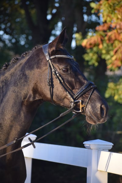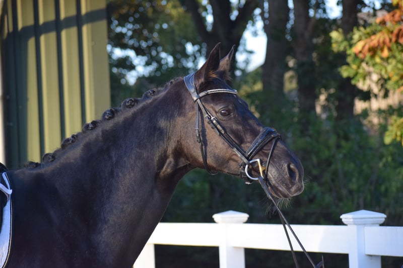 BRAVE TYPSTARKE LEHRMEISTERIN MIT TRAUMHAFTEM CHARAKTER - DRESSUR M* MEHRFACH PLATZIERT - SPRINGEN BIS A** TRAINIERT - JUNIOREN GEEIGNET - FAMILIENPFERD - FREUNDIN FÜRS LEBEN - JUNIOREN GEEIGNET - FAMILIENPFERD - FREUNDIN FÜRS LEBEN Zum Verkauf steht in Vertretung des Besitzers, diese wunderschöne, absolut sympathische, 168 cm große, top fitte 13-jährige (*2012), Hannoveraner rapp Stute, mit bester Abstammung von FIORANO x DREAM OF GLORY. „FRIZZANTE“ weiß in jeder Hinsicht zu überzeugen. Optisch besticht sie mit lackschwarzer Jacke, typvollem Gesicht, toller Muskulierung und einem auffällig gut konstruiertem Gebäude. Charakterlich ist Sie unschlagbar und für jeden Spaß zu haben. Ob im Dressurviereck, bei Strandausritt oder im Parcour, sie ist ein Spaß-Garant. Sie ist ein feines ruhiges Pferd mit Einfühlungsvermögen und Achtsamkeit für ihren Reiter. Sie ist Unerschrocken, leistungsbereit und mit Freude an der Abwechslung dabei. Eine wahre freundin fürs Leben. Setzt sich „FRIZZANTE“ in Bewegung, überzeugt sie auf den ersten Blick, durch ein auffällig gutes Seitenbild. Ihr Bewegungsablauf ist von Kraft geprägtem, bei guter geschlossenheit auf dem Hinterbein, mit feiner Anlehnung und viel Losgelassenheit. Sie verfügt über viel Schulterfreiheit und Schub, bei viel Schwung und guter Rückentätigkeit, bei guter Selbsthaltung. Dabei ist Sie auf M Niveau absolut Lektionssicher und arbeitet sehr gerne mit. „FRIZZANTE“ soll ein genau so tolles Zuhause finden, wie sie es bis jetzt bei ihrer jungen Besitzerin hatte. Sie wurde 6j. von ihrer damals 15 j. Besitzerin erworben. Beide haben sich zusammen, ohne Bereiter, mit qualifiziertem unterricht, auf M Niveu entwickelt, dabei dufte aber das wöchentliche Springtraining und auch die zwei mal wöchentlichen Austitte ins Gelände nicht fehlen. Durch das beenden der Abiturzeit, führt der Weg eines jugendlichen in ein spannendes Leben, wo "FRIZZANTE" gefahr läuft zu kurz zu kommen. Daher wird für diese wundervolle sportlerin und Lehrmeister ein tolles neues Zuhause gesucht, in dem Sie erneut ein Leben bereichern darf. Einerseits bis M* Dressur erfolgreich platziert und bis und A** Springen trainiert, ist Sie eine echter Lehrmeisterin und andererseits lässt sie sich von schwächeren Reitern oder Kindern im Gelände / Wasser, über Sprünge oder im Viereck völlig brav und verlässlich reiten. Sie wäre daher ein ideales Familienpferd, das ein abwechslungsreiches Programm kennt und mag - aber auch ein verlässlicher Sportpartner der richtig Lust an der Arbeit hat. JUNIOREN GEEIGNET. Eine gute röntgenologische und klinische AKU von damals liegt vor. In der gesamten Beseitzzeit hatte "FRIZZANTE" keine gesundheitlichen Probleme.