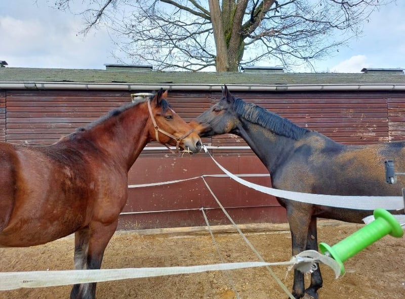We are seeking a loving, lifelong home for our personable Hanoverian mare Ella (approximately 1.73 m, 13 years old), where she can enjoy her life and grow old peacefully. Ella has brought joy to many children and teenagers as a vaulting horse. Due to a back condition (more details gladly provided in a personal conversation), we are currently looking for a final place for her — as a non-ridden companion horse. She should enjoy her retirement with a caring horse enthusiast for whom riding is not the main focus. Since there is also a concern about osteoarthritis, we prefer her to be in a paddock system or similar (not kept solely in stables), with as much turnout as possible. She is accustomed to living in a mixed herd with mares and geldings (ponies and horses) on pasture. In the herd, she tends to be relatively high-ranking, but always fair. Ella enjoys riding in the field and remains calm and fearless during her outings. Encounters with tractors, dogs, drones, farm machinery, waste collection vehicles, joggers, and others are no problem for her. She is also used to being lunged on a lead. She is regularly dewormed and vaccinated and stands barefoot. Ella is easy to handle and loves being groomed, massaged, and pampered. She enjoys any kind of attention. She is also incredibly well-behaved around children and can be led effortlessly by the smallest handlers, always attentive. Due to her friendly and curious nature, we can also imagine her in animal-assisted therapy. Our wish is for Ella to find a new, meaningful role — as a partner for ground work, walks, or simply as a family member. Please feel free to contact us with any questions. Priority goes to a good home over price.