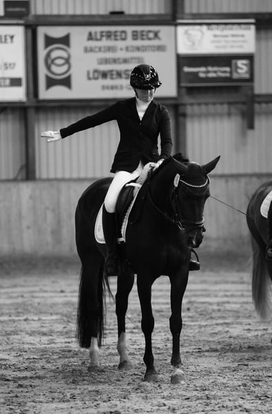 With a heavy heart, I now have to part ways with my 14-year-old mare (Fidertanz x Weltmeyer). Fio has always been my little all-rounder. She approaches everything with joy, makes good jumps, and always clears the fences. She also enjoys dressage work and hacking out. She is very well-behaved in handling and has no bad manners when ridden; however, a rider with solid A-level skills is recommended. Fio has been placed up to L** dressage and A* jumping with me. (L test qualified) - A full-cost insurance can be arranged. Additionally, a dressage saddle can be purchased for a small extra fee. - To prevent ride-and-run attempts, I charge €20 for a trial ride, which will be deducted from the purchase price if the horse is bought!