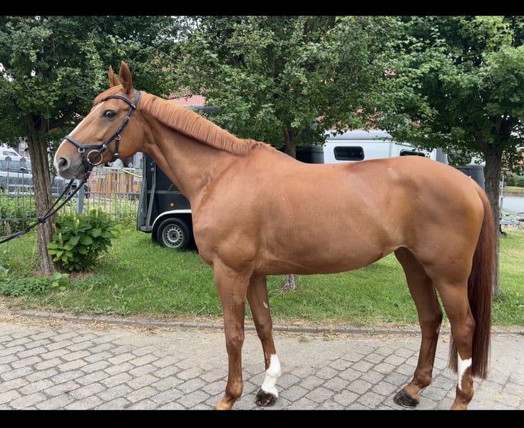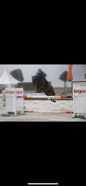Due to a professional change, I unfortunately have to part with my 14-year-old Hanoverian mare Sunny. She has competed successfully up to M-level show jumping. In daily work, she is always well-behaved and has never shown any vices such as bucking or similar. She has a pleasant forward movement, which is always easy to handle. She can also be ridden very well without saddle or bit. In handling, she is absolutely calm and cooperative, allowing everything to be done with her. Since we have to pass through the village to the riding arena, she is familiar with traffic including tractors, cyclists, cars, trucks, children, dogs, etc., and remains very relaxed and composed in such situations. She is simply a fun horse for everyone. I can see Sunny fitting well into an ambitious leisure riding program or lower-level jumping. I would also consider selling her as a riding school or lesson horse. She has been regularly vaccinated and dewormed. Additionally, she is shoe- and loading-friendly. Price is secondary to her well-being. Please feel free to contact me for further questions.