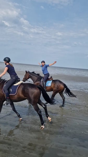 Diese tolle tolle Stute hat mit mir alten Reiterin Ausritte allein und zu zweit, einen Vielseitigkeitslehrgang, Wanderritte in der Eifel, im Sauerland und an der Nordsee gemacht und hat mich wirklich nie enttäuscht.