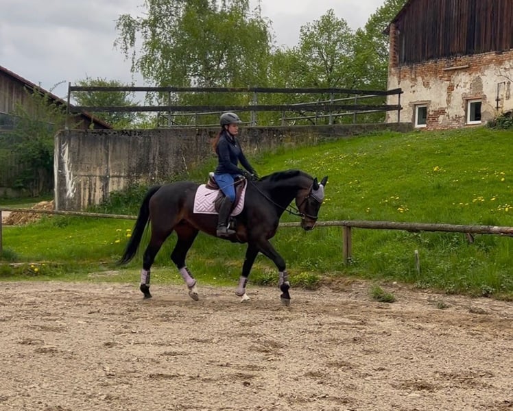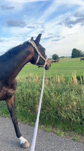 Chianti – Hannoveraner Stute, 14 Jahre alt - Abstammung(letztes Bild) Chianti ist eine ca. 1,69 m große Hannoveraner Stute, die nicht nur durch ihre elegante Erscheinung überzeugt, sondern vor allem durch ihr außergewöhnlich liebevolles und menschenbezogenes Wesen. Wer sie kennenlernt, merkt sofort: Diese Stute ist ein wahrer Engel. Im Alltag zeigt sich Chianti äußerst freundlich, sanft und zuverlässig. Sie ist in verladeform, schmiedeform, verkehrssicher und problemlos zu handhaben. Vorne ist sie bereits mit Eisen beschlagen. Chianti hat bereits Erfahrung in einer Herde gesammelt, ist eher rangniedrig und passt sich gut an. Sie stand jahrelang bei Schockemöhle als Zuchtstute in einer großen Herde. Unter dem Sattel befindet sich Chianti auf A-Niveau. Sie ist rittig, angenehm zu sitzen und arbeitet motiviert mit. Sie kennt sowohl einen Spring- als auch Dressursattel und lässt sich mit beidem angenehm reiten. Besonders hervorzuheben: Sie hat noch nie gebockt und geht problemlos alleine ins Gelände, weswegen sie auch für noch unerfahrene Reiter ein zuverlässiges Pferd ist. Gerne macht sie auch kleine Sprünge mit dir. Sie liebt es in den Wald zu gehen und genießt die Zeit mit Reiter. Man kann auch ganz locker an Halfter und Strick mit ihr eine Runde spazieren gehen, oder sie longieren. Chianti kann nicht mehr als Sportpferd für Turniere genutzt werden, da sie die Leistung körperlich nicht aufbringen kann. Aber sie eignet sich hervorragend als verlässliches Freizeitpferd und Zuchtstute. Sie sucht einen liebevollen Platz, gerne in einem Offenstall, an dem sie ihren Lebensabend genießen und weiterhin Freude schenken darf. Am liebsten wäre es ihr, wenn sie ganz oft an der frischen Luft ausgeritten werden darf. Chianti ist ein Pferd, das man vom ersten Moment an ins Herz schließt – treu, sanft und mit einer unglaublichen Menschenbezogenheit. Sie hat nur das Beste verdient ❤️ Bei ersthaftem Interesse sende ich auch gerne Videos.