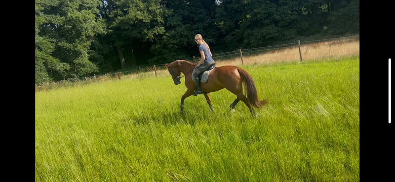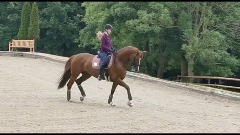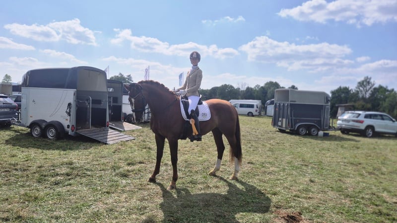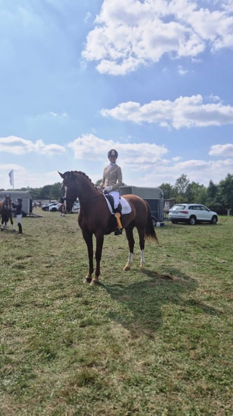 Heart horse with quality – Dressage mare with experience and an excellent character For sale is my 2011-born dressage mare (Hannoveraner, Münchhausen x Sandro Hit), approximately 17.2 hands tall, which I am reluctantly offering into the best hands solely due to time constraints. She is an absolute heart horse: very well-behaved, human-oriented, eager to please, and always up for fun. Not only does she impress with her lovable personality, but also with solid dressage training. She masters movements up to M/S level and has achieved competition success at L-level with a double bridle. Under saddle, she is uncomplicated, comfortable in the seat, and honest, making her an ideal school horse, competition partner, or a refined leisure horse – regardless of the rider’s age. She provides a lot of safety and joy and is also perfectly suited for ambitious amateurs. In handling, she is exemplary: - Loads easily onto the trailer - Gentle with the farrier and veterinarian - Healthy, regularly vaccinated, and well cared for She is very social, familiar with different husbandry systems, and feels especially comfortable when she can spend plenty of time outdoors. Currently, she enjoys her paddock box, which she appreciates very much. A home with appropriate facilities is explicitly desired. 📍 Location: 45549 Sprockhövel A forever home is sought where she will be loved, supported, and valued. No emergency sale. If genuinely interested, I look forward to a friendly contact.