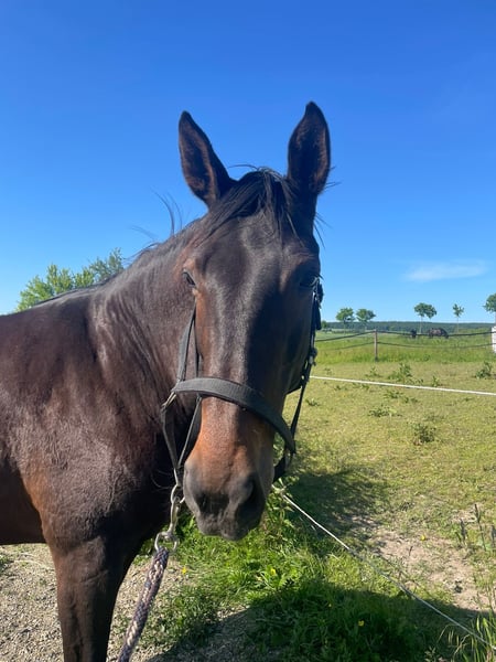 Companion mare available due to time constraints It is with a heavy heart that we must part with our dear mare due to time constraints. She is offered exclusively as a companion horse, as she is no longer rideable due to health issues. Not suitable for breeding. Regarding her history: * Osteoarthritis in the left hind leg * Ossification of the fetlock joint in the left front leg * Prone to laminitis with high-protein feeding and insufficient exercise (last laminitis episode about 2.5 years ago) Despite her health limitations, she is cheerful, very people-oriented, and enjoys extensive grooming and petting sessions as well as walks. She is ideally suited as a companion for another horse or as a herd member. It is important to us that she goes to good, loving hands that can cater to her needs. Only to be placed in open stable/paddock conditions with regular exercise – no pure box housing. Serious inquiries are welcome. Home before price!!!