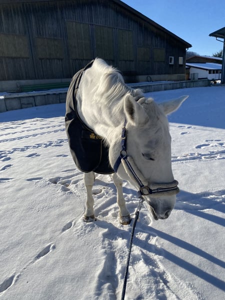 Verkaufe meine hübsche 19-jährige Hannoveraner Schimmelstute. Schweren Herzens verkaufe ich meine bald 19-jährige Schimmelstute. Abstimmung Calido I. Stockmaß knapp 1,70m. Sie ist bereits seit 14 Jahren in meinem Besitz, wurde 5-jährige von mir gekauft und kam davor direkt vom Züchter aus dem Norden. Sie hat damals eine erfolgreiche Stutenleistungsprüfung abgelegt und eine tolle springgezogene Abstammung mit Vermögen. Sie ist eingetragene Zuchtstute. Ich selbst habe sie einige Jahre Turnier geritten siegreich bis L-Springen. Auch auf vielen Springlehrgängen waren wir unterwegs. Nun ist sie seit einigen Jahren Freizeitpferd und wird aktuell von mir und meiner Reitbeteiligung 3-4 mal die Woche geritten. Sie ist kein Anfängerpferd! Sensibel und gerne mal etwas schreckhaft und doch hat sie ihr Herz am richtigen Fleck. Ruhe und Geduld haben sich immer ausbezahlt. Aufgrund nebenberuflich Studium, Corona-Zeit und geändertem Interesse hab ich das Turnierreiten aufgehört, da es zeitlich einfach nicht mehr machbar war. Da sie nun bald 19 Jahre ist wünsche ich mir für sie einen schönen Platz als Freizeitpferd. Auch als Zuchtstute oder langfristig mal als Beistellpferd wäre denkbar mit 24/7 Weidezugang. Sie liebt es auch einfach gut umsorgt zu werden und wäre auch ohne reiten glücklich. Bewegung braucht sie aber trotzdem- longieren, freilaufen lassen etc. Meine Stute hat seit vielen Jahren chronisches Asthma(überempfindlich auf Staub),was uns aber beim reiten und im Alltag nie gehindert hat. Gute Stallbedingungen, passendes Futter sind hier das A und O. Prophylaktisch inhalieren wir seit einigen Jahren mit einfacher Kochsalzlösung und dadurch haben wir seit einigen Jahren keinen Tierarzt mehr gebraucht. Das funktioniert prima und hilft uns sehr gut. Ansonsten ist sie immer fit, nie Probleme mit Lahmheit etc. Regelmäßig beim Zahnarzt, ebenso regelmäßig entwurmt. Sie ist schmiedefromm, verladefromm auch geländetauglich. Hier hat sie trotzdem gerne auch mal eine Begleitung dabei (egal ob zu Fuß, auf dem Fahrrad oder als Pferd ;-))da sie doch ab und an mal glotz oder etwas gruselig findet, dann ist sie aber super entspannt, egal ob Schritt, Trab oder Galopp. Allein sein ist für sie aber überhaupt kein Problem ( Stall, Anhänger, Koppel…). Auf der Koppel ist sie brav und war sowohl mit Stuten als auch mit Wallachen draußen. Da ich ihr zeitlich einfach nicht mehr gerecht werden kann, wie ich es gerne hätte und vor einigen Monaten Mama geworden bin und sich nun die Prioritäten nochmal geändert haben möchte ich sie in gute Hände abgeben, damit sie die Aufmerksamkeit bekommt, die sie verdient hat. Das Zubehör wie Sattel, Inhalator etc. würde ich natürlich alles, wenn gewünscht, mitverkaufen. Platz vor Preis! Bei ernsthaftem Interesse gerne PN an mich. Vielen Dank!