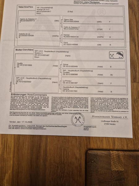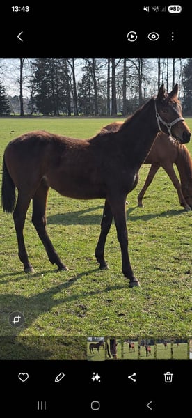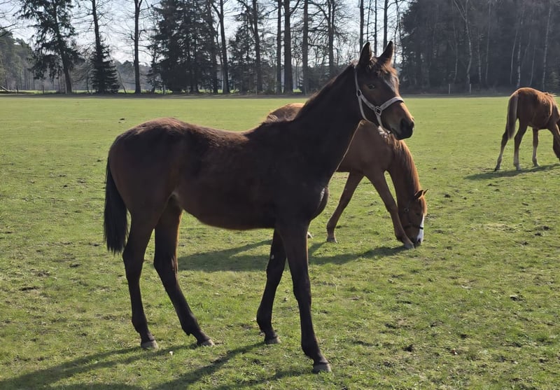 Hannoveraner Stutjährling, geb. 13.05.2025 Hochgewachsen, sehr typvoll, sehr zutraulich und temperamentvoll. Halfterführig, schmiedefromm. Endstockmaß schätzungsweise über 1,70 m. Vater: Ansingh de Lis Z, international erfolgreich unter Christian Ahlmann Mutter: Erfolgreich in Springprüfungen bis S***, Staatsprämienstute Hannover, Leistungsstute Springen, Schausiegerin Stutenschau Großmutter: Erfolgreich in Springprüfungen bis S**, Staatsprämienstute Hannover, Leistungsstute Springen, Schausiegerin. Halbschwester zum Bundeschampion Graf Gandalf, 6jährige Springpferde, 2006 Als Fohlen wurde eine Nabelinfektion diagnostiziert, diese wurde operativ behoben und ist vollständig ausgeheilt. OP Bericht vorhanden. Verkauf aufgrund von Aufgabe des Springsports und Zucht . Standort derzeit Walsrode Ab Ende April Standort Wesermarsch
