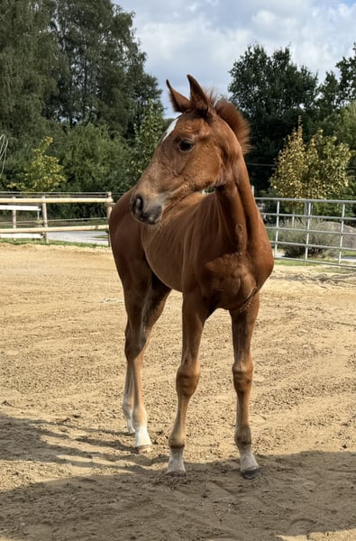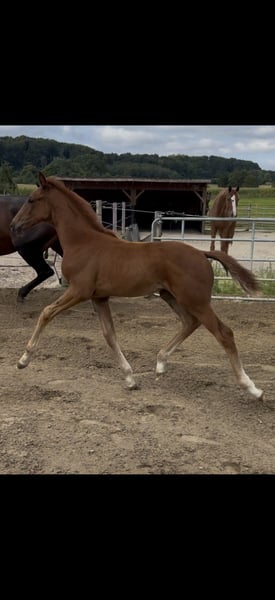 Zum Verkauf steht unser Stutfohlen aus vergangenem Jahr. Leider hatten wir letztes Jahr nur ein Fohlen und deswegen haben wir uns jetzt entschieden Sie zu verkaufen. Da Sie erst Ende Mai geboren wurde, haben wir Sie erst vor kurzem abgesetzt. Sie hat sich seit dem gut weiterentwickelt und wir wünschen uns das sie in erfahrene und fördernde Hände kommt. Wir haben noch eine zweijährige Vollschwester zu ihr und sind überzeugt das Sie viel Qualität und Leistungsbereitschaft mitbringt.