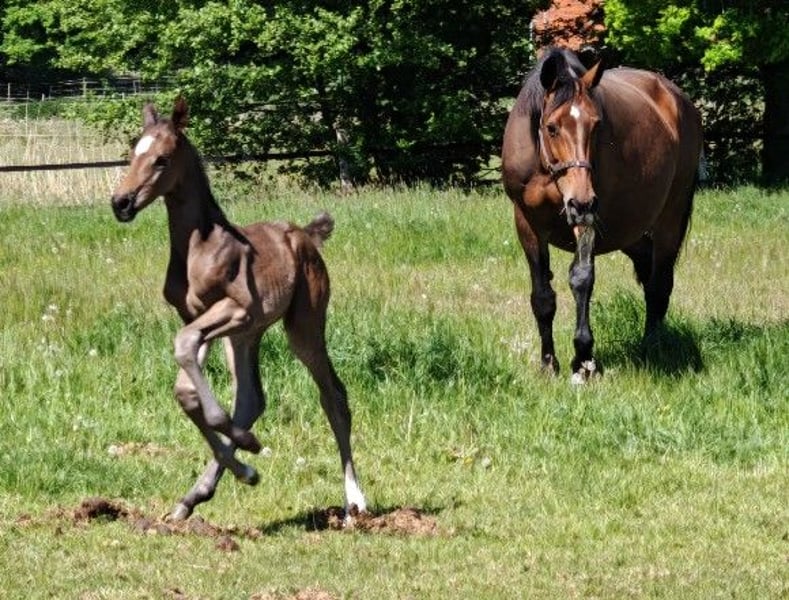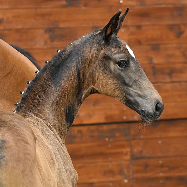 Ghianna, the daughter of Global Hope, is a striking foal with elegance in her overall appearance. She has an expressive head and face, as well as powerful movements with plenty of drive throughout her body. At the previous foal show, Ghianna secured 3rd place. Due to a maternal injury, we were unable to participate in the auction at Klosterhof Medingen.