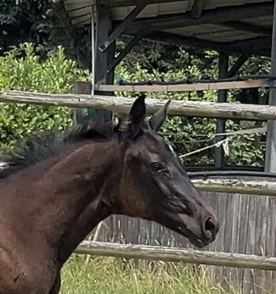 Unsere Sweet Glamour trägt ihren Namen zu Recht. Ein wirklich hübsches Stutfohlen aus bestem Dressurstamm, wird sie ein Zeichen im Viereck setzen. Geboren ist sie am 02.05.25. Ihr Vater Sarai L (Secret x For Romancier) besticht durch Schönheit und Vermögen in seiner schwarzen Jacke. Ihre Mutter (Glamourdale x Donnerhall x Pik Bube I) vereint das Beste in sich und ist mit einem kräftigen Fundament ausgestattet. (Würde eventuell auch zum Verkauf stehen. 3-jährig angeritten und hatte 2 Fohlen) Sweet Glamour vereint alles davon, inklusive einem tollen und menschenbezogenen und sehr verschmusten Charakter. Auf dem ersten Video ist die hübsche Dame 4 Tage alt und das andere Vidoe ist am 21.07.25 entstanden.