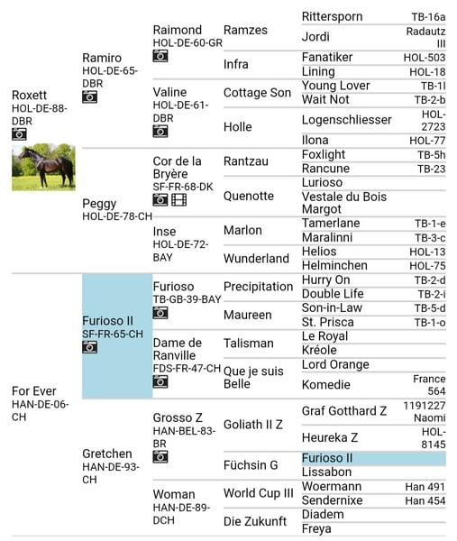 Cavalla da riproduzione, ha sempre accolto, portato e partorito bene negli ultimi anni. Nessun problema nemmeno con il seme congelato! Per il 2025 in puledro con l'Holsteiner Roxett (Ramiro x Corde la Bryere) anche lui con seme congelato, Pedigree e foto ecografica con le immagini.