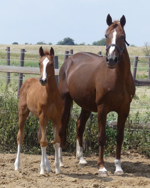 Jument d'élevage, a toujours bien pris, porté et mis bas ces dernières années. Même avec du sperme congelé, pas de problème ! Ne sera cédée qu'après le poulinage ! !! Le prix est sans poulain, mais sur demande, à nouveau porteur du même étalon ! Pour 2025, porteur du Holsteiner Roxett (Ramiro x Corde la Bryere) issu de sperme congelé, Ascendance et échographie avec les photos. Prix maintenant en gestation 8000,-€ . Non porteuse après le poulinage 4000,-€. Après le poulinage à nouveau en gestation voir prix d'annonce !