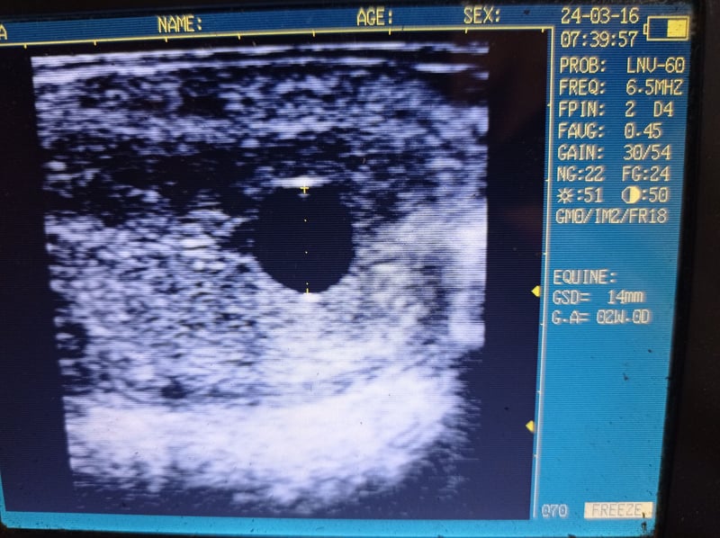 Fokmerrie, heeft de laatste jaren altijd goed opgenomen, gedragen en gedekt. Zelfs met diepvriessperma geen probleem! Drachtig voor 2025 van de Holsteiner Roxett (Ramiro x Corde la Bryere) Stamboom en echo in de foto's.