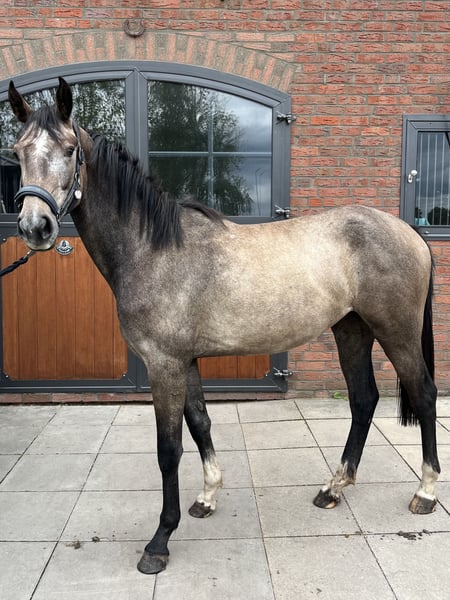 Our Hanoverian mare "Velvet" is urgently looking for a new home, as I can no longer give her the time she deserves due to my studies, part-time job, and other horses. I notice every day how much she enjoys attention and simply needs "her" person. Velvet was born in 2023 and is sired by Valensky x Forsyth. She will be a gray. Thus, she not only has excellent potential but also a clear mind and a friendly disposition. Velvet is regularly groomed and is already familiar with the basics of groundwork, always participating with curiosity, eagerness to learn, and attentiveness. Currently, she spends her days in a paddock with a peer of the same age and in a mixed herd. Velvet is vaccinated, regularly dewormed, and has been introduced to the farrier. We are looking for someone who is already regularly engaging with her and wants to train her lovingly and patiently over the coming years. Please, no inquiries from dealers. We are seeking a forever home with ample space and a dedicated person. Our asking price is €9,000, but it is negotiable for the right place. If you are interested, we look forward to hearing from you. 0176 45857615
