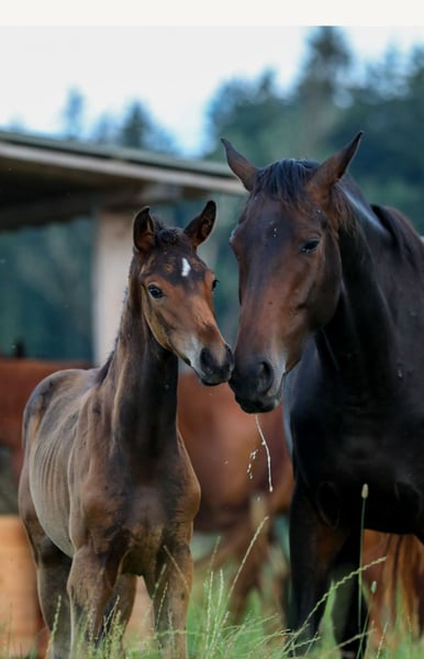 Voici une de nos poulinières de l'année à vendre. Une magnifique fille brun foncé du VA BENE, issue d'une mère directe de ZACK. La mère est une jument primée de Hanovre et a été admise à l'exposition Herwart-von-Decken. La poulinière est née chez nous, a grandi en troupeau, est en parfaite santé et très proche des humains. La jument peut également rester dans notre troupeau pour l'élevage en cas d'achat. Lignée de Hanovre MOHRIN (v.d.Decken)