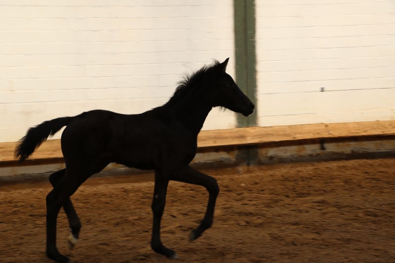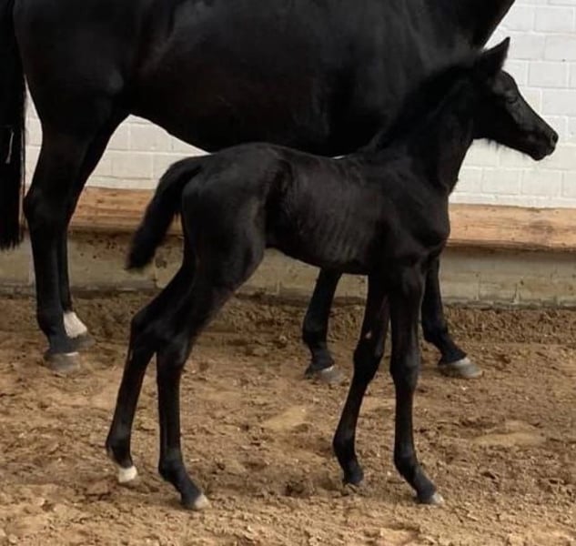 Wegen Bestandsverkleinerung abzugeben . Typvolle 2 Jähr. Rappstute von Bon Esprit aus VerbPrSt von Sirtaki x Show Star x Fidermark . Sirtaki selbst stammt ab von Sir Donnerhall und war Rittigkeitssieger seiner HLP . Sportlich war er Seriensieger in L und M Dressuren mit Kindern und Jugendlichen MV S
