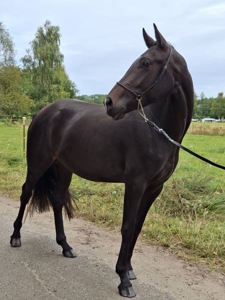 Verkaufe elegante Hannoveraner Stute – perfekt für Zucht und Freizeit! Diese wunderschöne schwarzbraune Hannoveraner Stute wurde im Jahr 2022 geboren und besticht durch ihre charmante Erscheinung und vielversprechende Abstammung. Derzeit mit einem Stockmaß von 162 cm vereint sie Größe und Anmut, ideal für ambitionierte Züchter oder Reiter, die Wert auf Qualität legen. Sie hatte leider einen Weideunfall, was eine Athrose im Fesselgelenk hinten links ausgelöst hat. Aktuell ist eine Taktunreinheit im Trab erkennbar. Näheres dazu gerne per PN. Sunny ist absolut brav und kopfklar. Sie ist für alles offen und ein absolut ehrliches Pferd. Da sie mütterlichseits aus einer Trakhener Linie kommt, ist sie sehr menschenbezogen und liebt jede Art von Beschäftigung. Daher könnte ich mir sie auch super in der Bodenarbeit vorstellen. Bei Fragen und Intresse einfach melden!