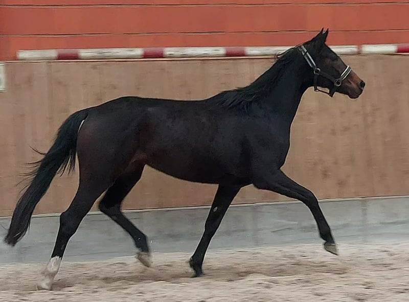 Belle jeune jument hannoverienne, élégante, souple et pleine de charme