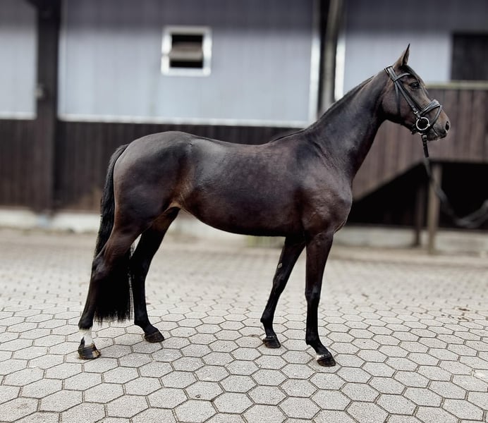 Florina ist eine bildschöne, freundliche schwarzbraune Stute. Sie ist fein zu reiten und besitzt drei sehr gute Grundgangarten. Sie ist erst kurz unterm Sattel und zeigt sich bereits sehr intelligent und kooperativ. Ein Pferd mit viel Potenzial, direkt aus Züchterhand.