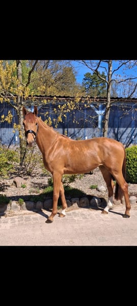 Charming, beautiful 3-year-old Hanoverian chestnut mare by Bundeschampion, S-Dressage winner, and Rittigkeitsvererber Va`Pensiero x Sansisco x Rubinstein I. She is of medium build, with an impeccable temperament and three good gaits. An uncomplicated horse suitable for everyone, whether for personal training or breeding purposes. The mare is lunged, lives in a herd, and is familiar with box stall and open stable management, as well as daily turnout. She is farrier- and loading-friendly and free of eczema. Her half-brother on the dam’s side has competed successfully up to S-Dressage level. The dam herself is very fertile. TÜV available. Directly from the breeder. Videos can be sent via WhatsApp (01735274764).