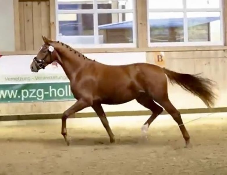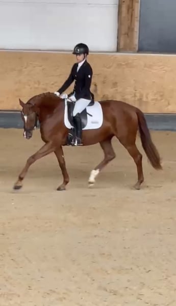 **For sale: Beautiful Hanoverian mare** For sale is a pregnant impressive Hanoverian broodmare born in 2021. This elegant chestnut mare impresses with her charming appearance and her excellent dressage disposition. **Characteristics:** - Breed:** Hanoverian - Gender:** Mare - Year of birth:** 2021 - **Color:** Chestnut - Height:** 158 cm - **Discipline:** Dressage This young mare finished the mare performance test with a final score of 8.22. Felicia has a very good character, is smart and very rideable. She shows great potential in dressage and is above average in free jumping. Felicia is ready for further training. She has a friendly nature, is willing to learn and is always motivated at work. Ideal for ambitious riders looking for a talented young horse. If you are interested and would like further information, please contact us on 0174/8855742.