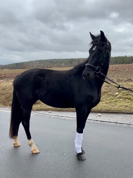 For sale is a high-quality 3-year-old Verband Premium mare with great potential for sport and/or breeding. The mare is appropriately in training for her age. She is saddle broken, steady under saddle, and has been ridden approximately 10 times so far. When mounting, she is calm and uncomplicated. Overall, she demonstrates a willingness to learn, attentiveness, and a positive work attitude. Since December, she has been in our possession and has been gently and patiently trained. In daily handling, she is friendly and cooperative. She impresses with her modern type, correct conformation, and good movement quality. Viewings are possible by appointment.