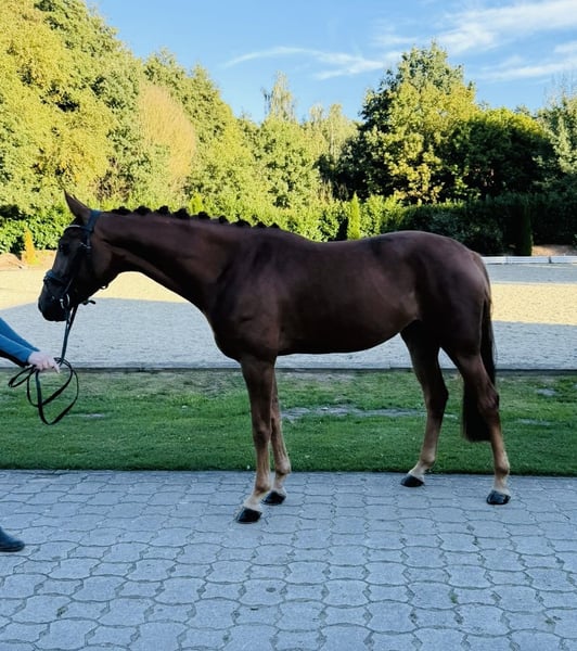 Zum Verkauf steht eine bildschöne, 4-jährige Hannoveraner Stute mit besten Voraussetzungen für eine erfolgreiche Zukunft im Sport, Freizeit oder in der Zucht. Diese junge Dame überzeugt durch drei gute Grundgangarten, ein aktives Hinterbein sowie viel Elastizität und Schwung. Sie präsentiert sich stets lernwillig, nervenstark und mit einer positiven Arbeitseinstellung. Aktuell befindet sie sich in professioneller Ausbildung und entwickelt sich täglich weiter. Röntgenbilder ohne Befund liegen vor und können bei ernsthaftem Interesse eingesehen werden. Ein Kennenlernen ist nach Absprache jeder Zeit möglich.