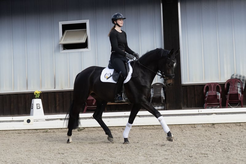 Zum Verkauf steht eine ansprechende, dunkelbraune 4-jährige Stute, die sich aktuell in der Ausbildung befindet. Sie überzeugt durch ihre elegante Erscheinung und ihre aufmerksame, sensible Art. Die Stute ist dem Alter entsprechend gut angeritten und zeigt sich lernwillig sowie motiviert bei der Arbeit. Sie verfügt über eine gute Grundqualität und bringt viel Entwicklungspotenzial für die weitere Ausbildung mit. Aufgrund ihres sensiblen und teilweise schreckhaften Wesens ist sie nicht für Anfänger geeignet. Sie benötigt einen erfahrenen Reiter, der ihr Sicherheit vermittelt und sie weiter fördert. In den richtigen Händen kann sie sich zu einem zuverlässigen und leistungsbereiten Partner entwickeln. Ein interessantes Pferd für ambitionierte Reiter, die Freude daran haben, ein junges Pferd weiter auszubilden. Bei Interesse gerne melden für weitere Informationen oder ein Probereiten.