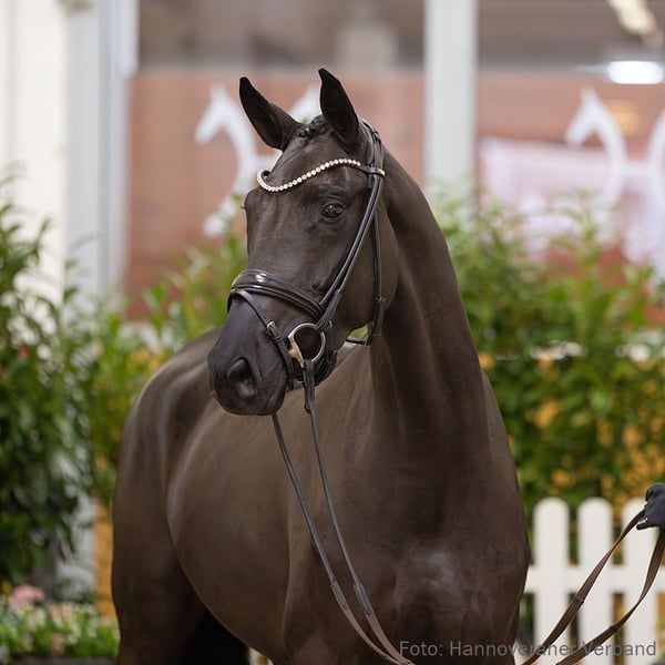 Tobitha ist ein extravaganter Dressurnachwuchs der absoluten Spitzennorm. Bewegungseleganz, hervorragende Reiteigenschaften und ihr harmonischer Habitus sprechen für sich. Bereits siegreich mit ihrer Reiterin Carolin Seifert-Miserre in Reitpferdeprüfungen, zeigt sie vielversprechendes Potenzial für die sportliche Zukunft. Aus der direkten Mutterlinie stammen u. a. die beiden gekörten Hengste Livorno v. Livaldon (DRE: S*** mit Franziska Haase) und Hampton Court v. His Highness. Sportname: Tobitha Turniererfolge: RPF: 2/1. 1. Generation Aufbauprüfungen Dressur: Van den Hoek v. Vilancio (DRE: L). Auktionspferde: HannPr Vicky v. Vilancio (VA 2020). 2. Generation Sportpferde Dressur: gek. Hengst Livorno 64 v. Livaldon (DRE: S*** mit Franziska Haase,Verden 2017,HM 2017); Usambara S v. United (DRE: M** mit Jessica Hepp); Die Eine 4 v. Dubarry (DRE: M* mit Christina Aumüller); gek. Hengst Hampton Court v. His Highness (DRE: M** mit Sabine Börker-Müller,Kreuth 2007). Aufbauprüfungen Dressur: Royal Selection 3 v. Baron (DK) (DRE: L); Lessino v. Lissaro (DRE: L); gek. Hengst Torriani 2 v. Temptation (DRE: L,Vechta 2013); gek. Hengst Fürst Bolero/von Fürst Grandios v. Fürst Grandios (DRE: L,Verden 2010,HM 2010). Besondere Sportergebnisse: StPrA Her Majesty v. His Highness (Championat f. Reitpferdeohne Mindestleistung Kat.A 2007,VA 2009,Herwart von der Decken-Schau Verden 2007); Dolores/Dolores 118 v. Davignon I (Bronze Bundeschampionat f.Reitpferde o.M. 1998,Championat für Reitpferde m.M. 1998,VA 1998: 50.000 €,Louis Wiegels-Schau Hohenhameln 1997). gekörte Hengste: gek. Hengst v. Dante Weltino (München-Riem 2019). Auktionspferde: First One v. Fürst Nymphenburg (VA 2012); Rudi v. Rousseau (ex: Rambo) (VA 2011); Sweet Choice v. Stedinger (FoVA 2006); Hamlet 65 v. Hochadel (VA 2010); Don Reena v. Donnerhall (VA 2006); gek. Hengst Desperado/Desperado 79 v. Davignon I (HM 1996); Format A.S. v. Fabriano (VA 1996). Bes. Prämientöchter: HannPr Vanadis/Vanadis 8 v. Valverde; StPr Rose Baccara v. Rousseau (ex: Rambo); StPr Rosi v. Rotspon; StPr Namibia/Namibia 3 v. Natiello; StPr Rena/Rena 53 v. Regazzoni. 3. Generation Sportpferde Dressur: Fame/Fame 119 v. Fabriano (DRE: M** mit Sieke Huth). Sportpferde Springen: Crass Clausi v. Cellestial (SPR: int. 1,40 m mit Thomas Weinberg); Checkmoon ASK v. Conthargos (SPR: int. 1,30 m mit Renee Ulvsbjerg); Cayenn Pepper Peba v. Cellestial (SPR: 1,35 m mit Rene Rückert); Cowaro Pe-Ba v. Chacco-Blue (SPR: 1,30 m mit Frieda Grieß); Werle/Werle 2 v. Werther (SPR: M mit Rückert,Rene). Aufbauprüfungen Dressur: Daturo v. Desperados (DRE: L); gek. Hengst Well-done v. Welser (DRE: L,Verden 2002,HM 2002). Aufbauprüfungen Springen: Convoi 5 v. Come and Fly (SPR: 1,30 m mit Anna-Katharina Hildebrandt); gek. Hengst Lancario v. Lancado (SPR: L,Redefin 2008); StPr Curly Joe Peba/Curley Joe Peba v. Cellestial (SPR: L). Besondere Sportergebnisse: StPr Baccarole/BACCAROLE 5 v. Bolero (Championat für Reitpferde m.M. 1990,Siegerstute Louis Wiegels-Schau Heiligenfelde 1989,Siegerstute Europaschau Brüssel 1990,Bundesschau Verden 1990,Europaschau Brüssel 1990,Bundesschau Warendorf 1994,Bundesschau Warendorf 1994,Ratje Niebuhr-Schau Verden 1994). gekörte Hengste: gek. Hengst Wunder Knabe/von Welser v. Welser (Verden 2003). Auktionspferde: What a Chance/What a chance v. Werther (FoVA 1995); Alina/Alina 78 v. Amoroso (VA 1998); Big Boy Bonito v. Borneo (VA 1996,HM 1994); Bolschoi 9 v. Bolero (VA 1994). Bes. Prämientöchter: StPr Amorosa/Amorosa 2 v. Amoroso; StPr Bajadere/BAJADERE 10 v. Bolero (Louis Wiegels-Schau Heiligenfelde 1989,Bundesschau Verden 1990,Ratje Niebuhr-Schau Verden 1994). 4. Generation Sportpferde Dressur: gek. Hengst Walhall/Walhall 5 v. Waldhorn (DRE: S mit Fratschner,Friedr.Dr.,Verden 1979,HM 1979). Sportpferde Springen: Tannenzapfen v. Tannenberg (SPR: M mit Stura,Manfred 2606). Auktionspferde: Duell 76 v. Derneburg (VA 1977). Bes. Prämientöchter: StPr Waleska v. Waldhorn (Ratje Niebuhr-Schau Verden 1985,Ratje Niebuhr-Schau Verden 1988,Louis Wiegels-Schau Heiligenfelde 1989,Bundesschau Verden 1990,Ratje Niebuhr-Schau Verden 1994). 5. Generation Sportpferde Dressur: Karajan 28 v. Sixtus (DRE: Grand Prix mit Michael Rohrmann,Dressurprüfung Kl. S*** - Grand Prix Kür - 2008,Dressurprüfung Kl. S- Grand Prix de Dressage 2007,Dressurprüfung Kl. S- Grand Prix Kür - 2006,Dressurprüfung Kl. S- Grand Prix de Dressage 2006); gek. Hengst Kasimir/Kasimir TSF v. Ivernel (DRE: int. S** mit Bernadette Brune,Deutsche Meisterschaft Junge Reiter Dressur 2011,Nationenpreis Dressur Kl.S Junge Reiter -international- 2011,Championat f. Reitpferdeohne Mindestleistung Kat.A 2005,Neumünster 2004); gek. Hengst Karolinger I/Karolinger TSF v. Latimer (DRE: S*** mit Jennifer Weber,Bundeschampionat f.Reitpferde m.M. 2005,Championat f. Reitpferdeohne Mindestleistung Kat.A 2005,Kerken 2004); StPrA Delores v. De Value (DRE: S** mit Bernd Schopf); Kiriakos TSF v. Elfado (DRE: S*** mit Kathleen Kröncke,Championat f. Reitpferde 2016,Championat f. Reitpferde 2015); Kronos 63 v. Ivanhoe (DRE: S** mit Andrea Hanisch); Küstenjunge v. Elfado (DRE: S** mit Kim-Elisabeth Bendfeldt,Deutsches Amateur-Championat Dressur 2022); Kornett/Kornett 88 v. Starway (DRE: S** mit Kim Pfeiffer); gek. Hengst Konradi/Konradi TSF v. Charly Chaplin (DRE: S** mit Peter Koch,Alsfeld 2016); Kanzler Klaus v. Hohenstein (DRE: S** mit Jürgen Böckmann); Kreon 17 v. Hamilton (DRE: S* mit Sarah Scheuermann); Sommermond/Sommermond 2 v. Sorento (DRE: S* mit Valeska Hauptmann); So Cute v. Sorento (DRE: S* mit Carina Leinemann); Weltenfürst v. Weltmeyer (DRE: S* mit Johannes Lieb); Herz Klassik v. Hertug (DRE: S* mit Meike-Kristine Pratschke); Kaspian v. King Arthur (DRE: S* mit Hannes Lütt,SPR: L,Championat f. Reitpferde 2009); Friendly Fire v. Ferragamo (DRE: S* mit Michaela Herrmann,SPR: 1,30 m mit Michaela Herrmann); Cornett 43 v. Tümmler (DRE: S mit HESSEN,HEINR.-DONATHUS V.,DM-Wert.Jun.Dress.Kl.