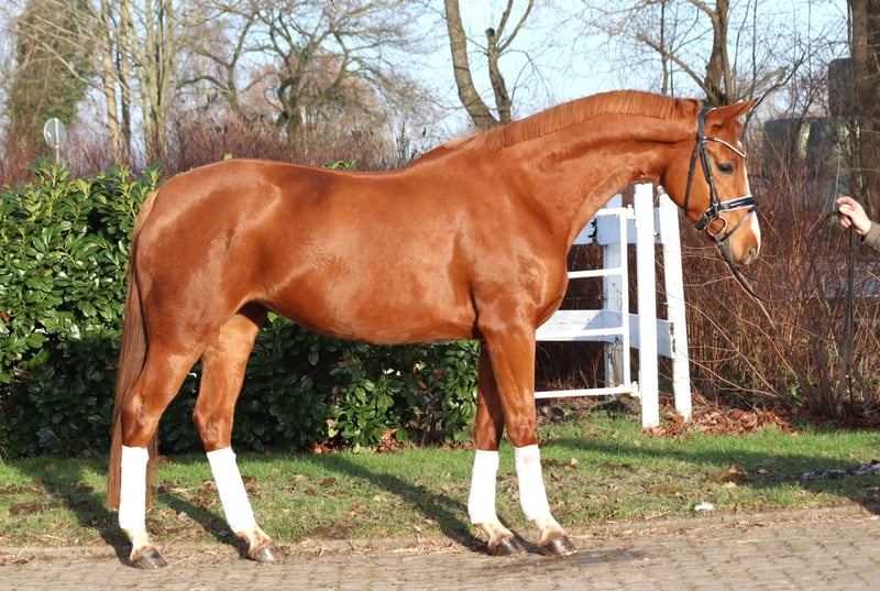 Sympatische 4 jährige Stute von Damaschino x Depardieu, die mit 3 guten Grundgangarten überzeugt. Sie ist super brav im Umgang und bereits anlongiert. Die Stute zeigt sich in der Arbeit sehr unkompliziert ist jedoch noch nicht angeritten. Preis zzgl. Mwst. Anfragen nur telefonisch, E-mails werden nicht beantwortet.